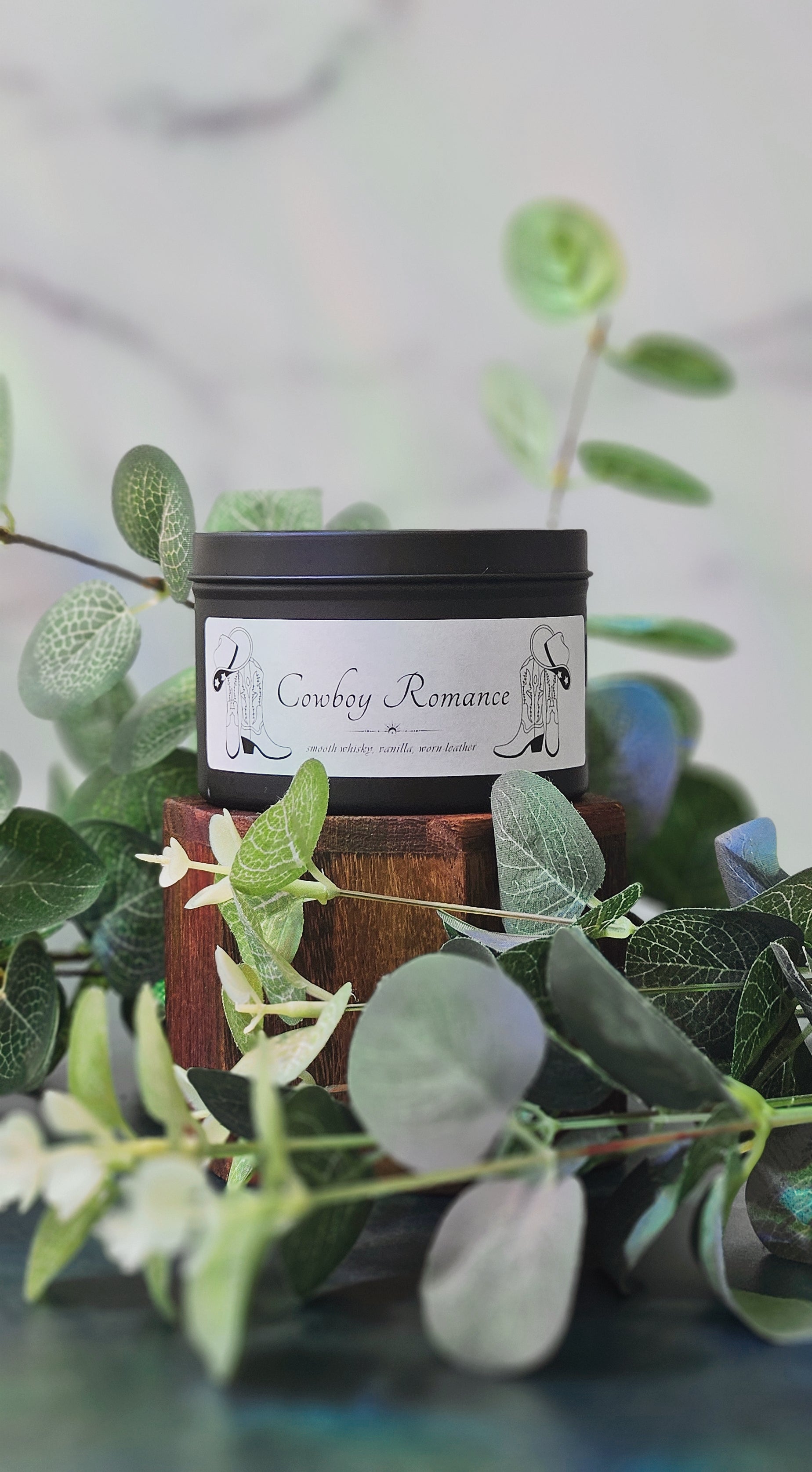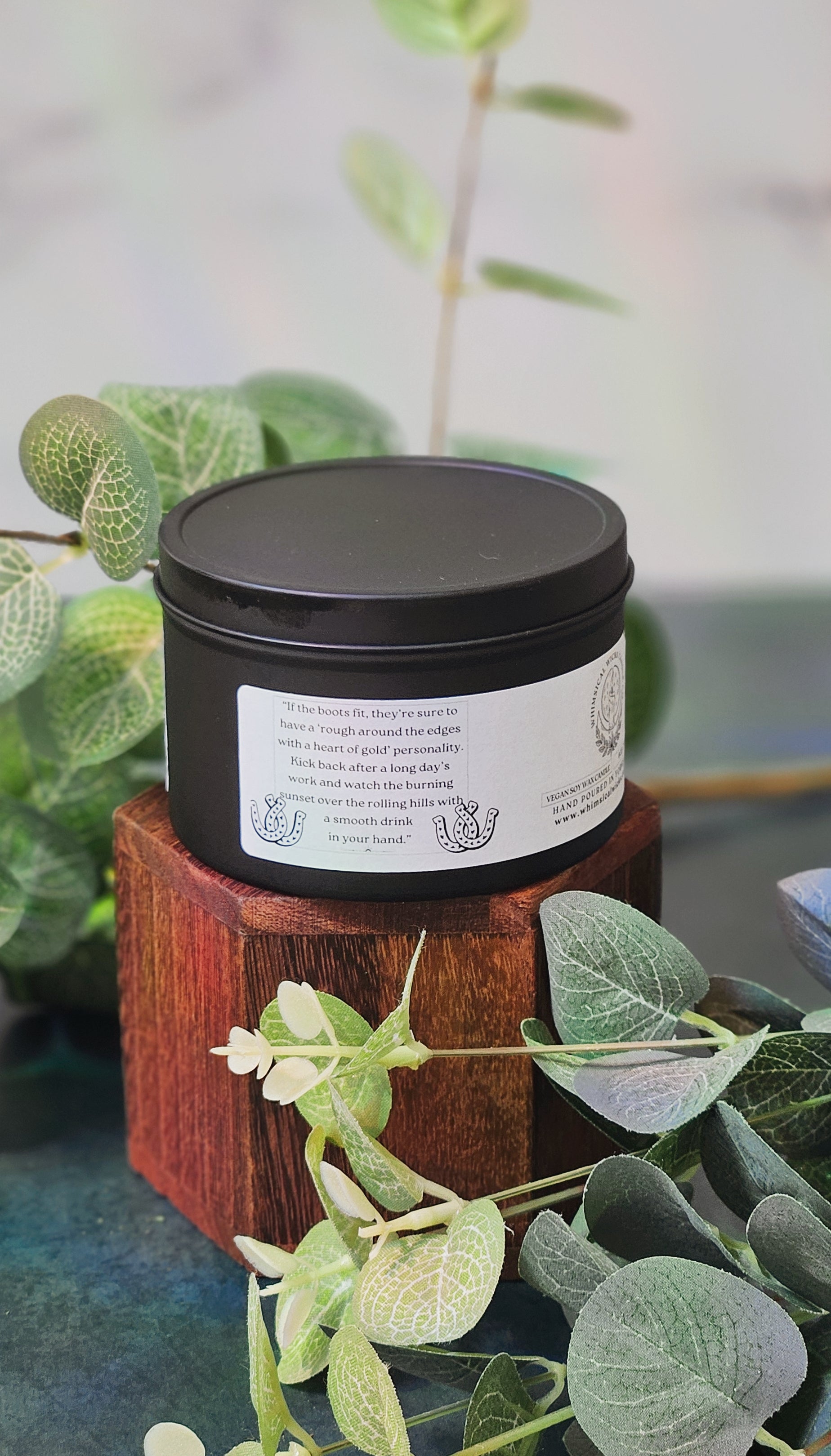 An 8 ounce vegan soy wax candle featuring a robust blend of smooth whisky, vanilla, and worn leather.