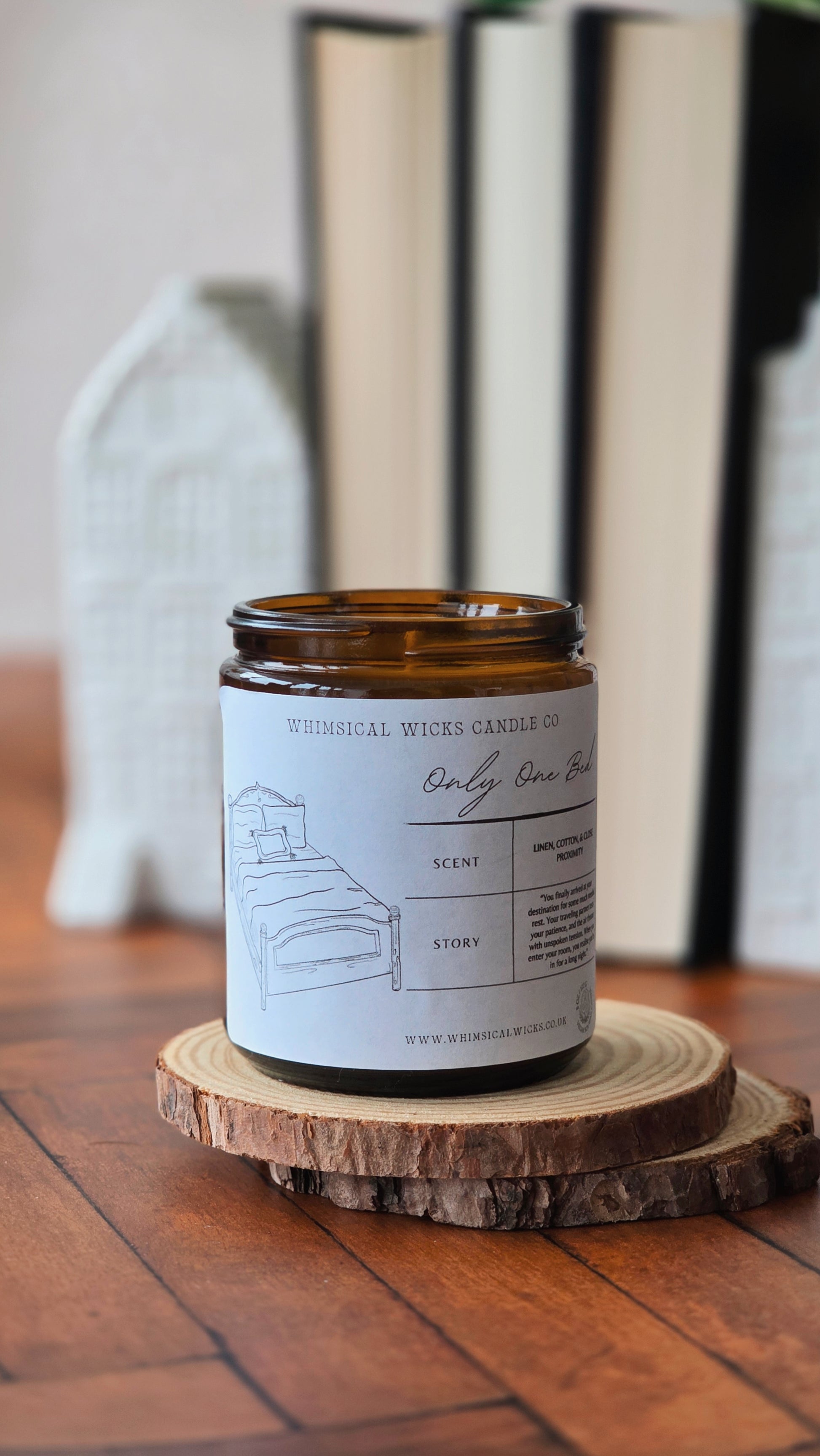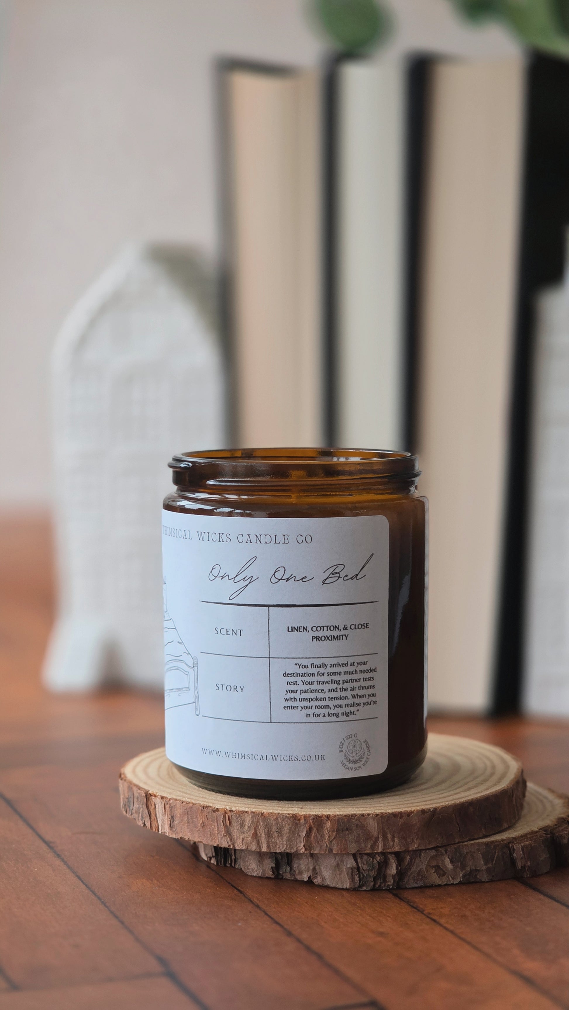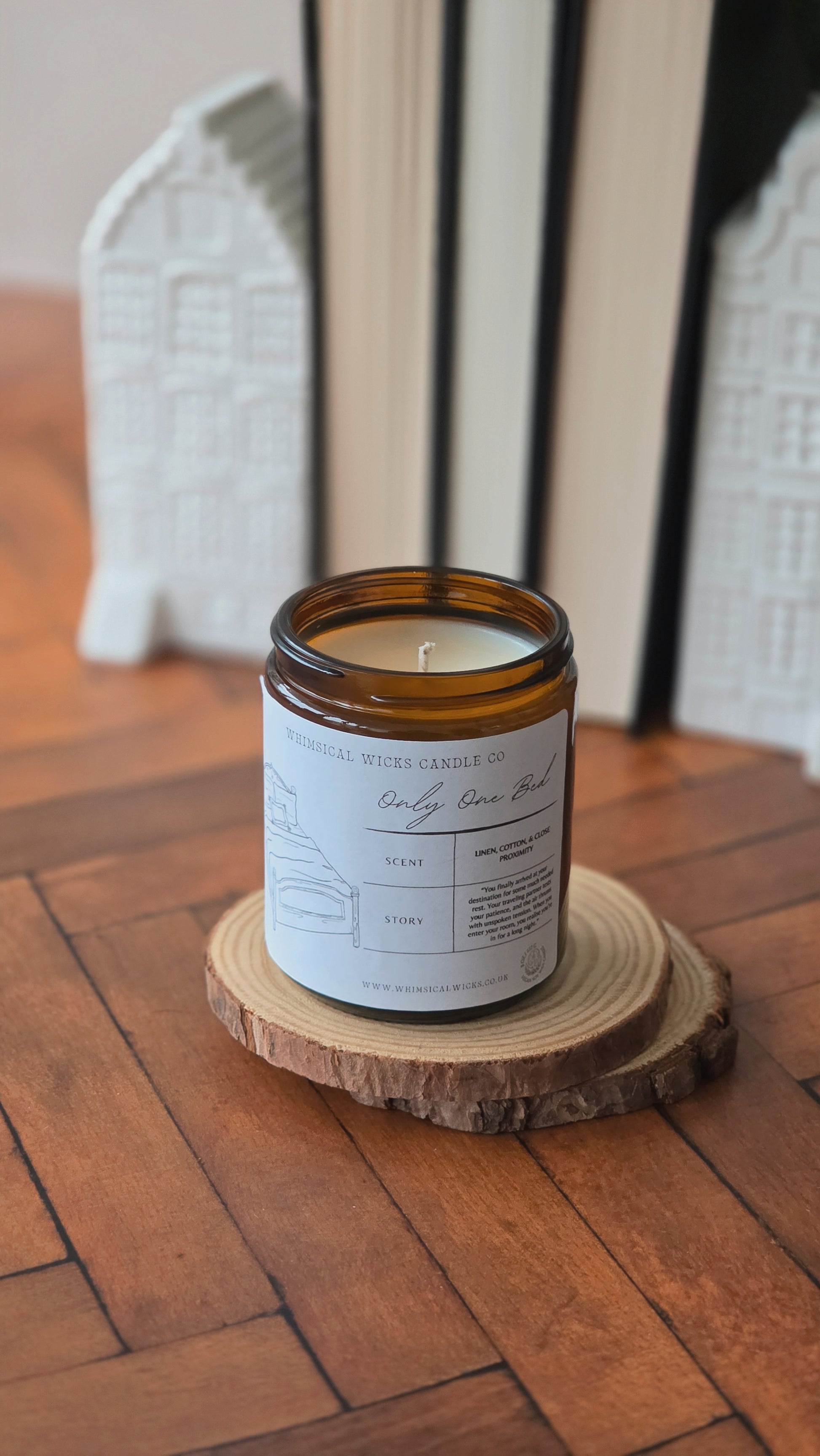 An 8 ounce vegan soy wax candle featuring a crisp blend of linen, cotton, & close proximity.