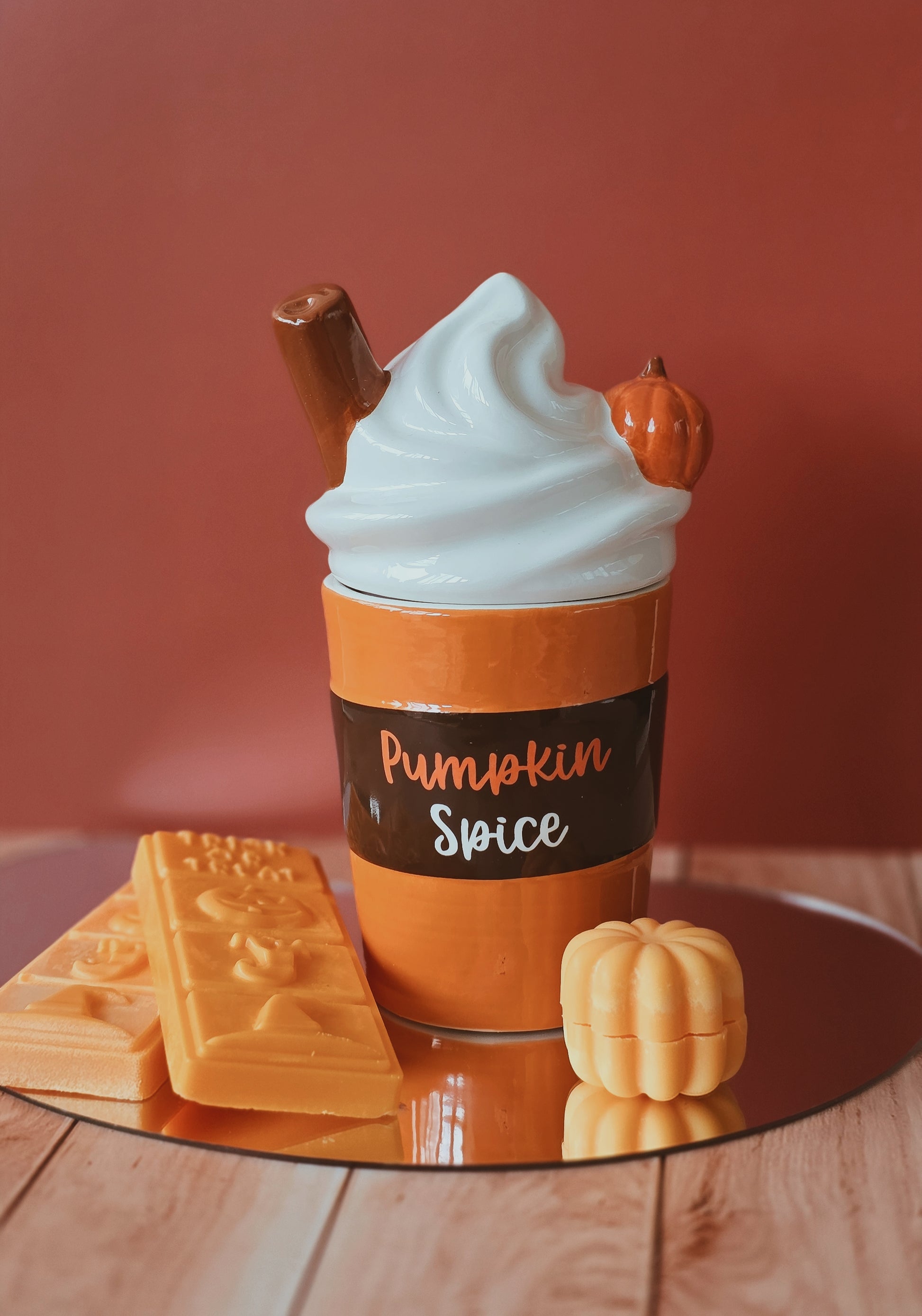 Bring a taste of autumn to your decor with this ceramic oil burner and wax warmer, shaped like a delicious pumpkin spice latte. A wonderful gift for coffee lovers, it's an ideal burner for melting our autumn-themed wax melts, filling the home with the comforting scents of the season. Always remove the lid when in use.